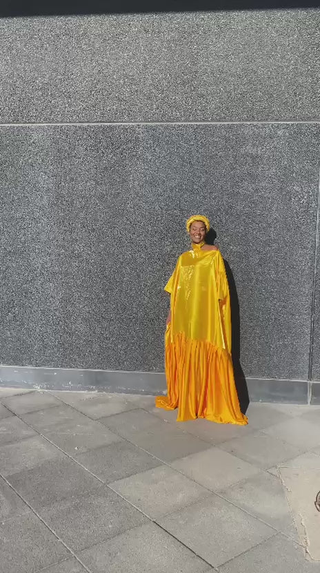 Le jaune éclatant de cette tenue, capture la lumière et la reflète à travers chaque détail, symbolisant votre élégance, votre confiance en vous et votre éclat intérieur.